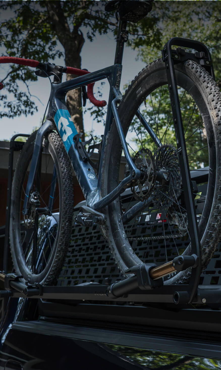 Mount your bike rack to either side of your IBEX frame using the Piston SR bike rack mounting system.